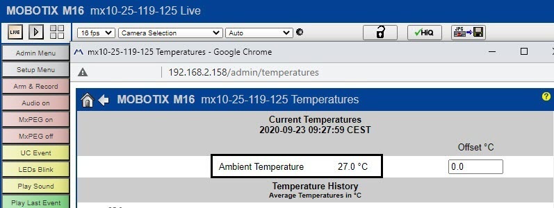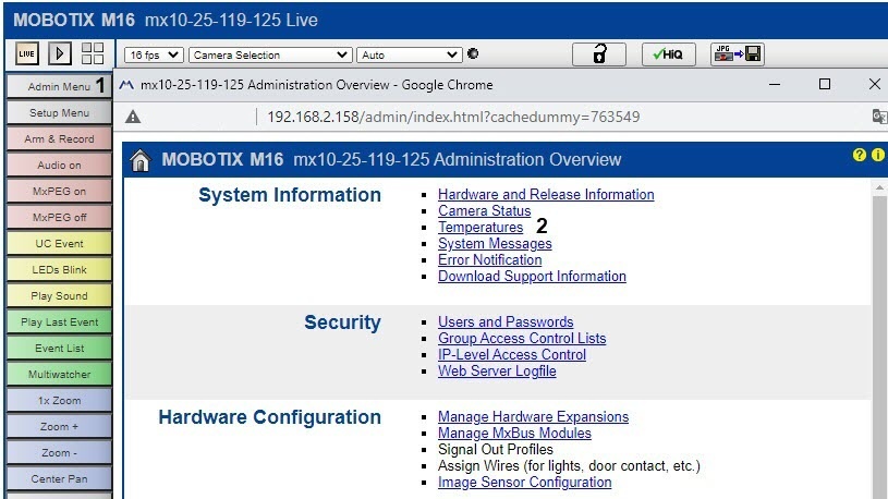 1. Proceed to admin menu (1), and select Temperatures (2).