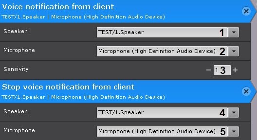 Use this action for routing the voice transmission from a client PC to a designated loudspeaker.