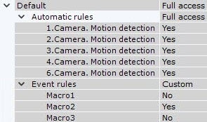 Microphone | No access | The user is unable to listen to live sound from the video camera. The user is unable to listen to sound recordings from the archive. |