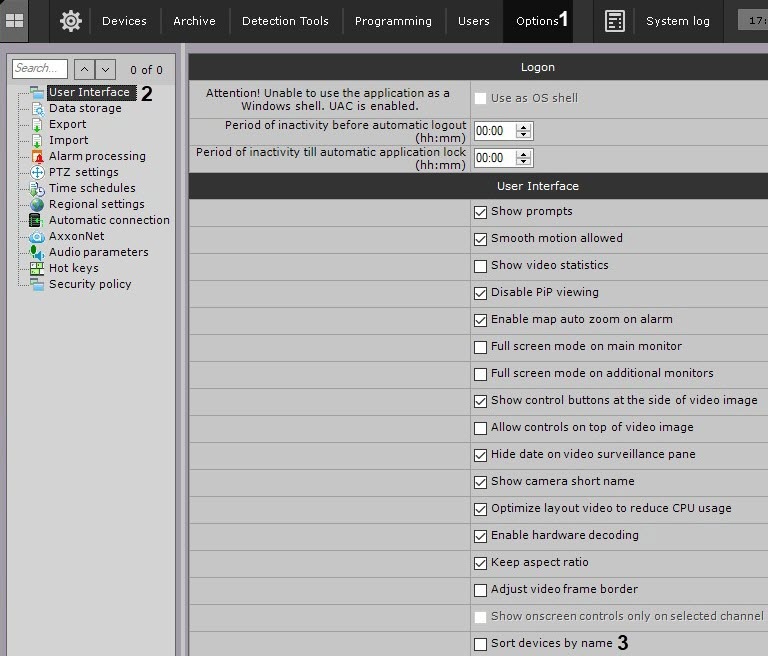 기본적으로 객체 패널(Objects Panel 참고)의 카메라는 짧은 이름으로 정렬됩니다 (The Video Camera Object 참고).
