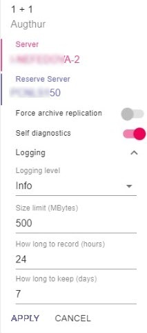 구성의 추가 변경 사항에는 로깅 매개변수만 포함될 수 있습니다. 이렇게 하려면 버튼을 클릭합니다.