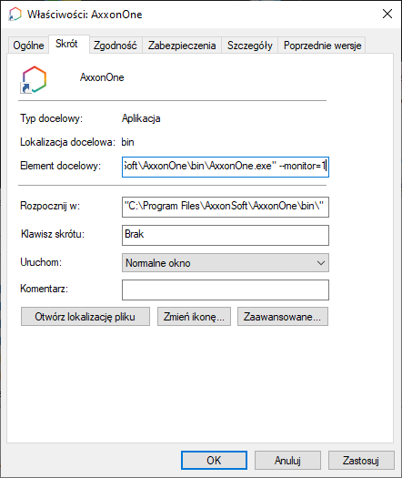 - We właściwościach każdego skrótu, w linii Element docelowy, dodaj parametr --monitor=N.
