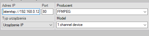2. Dodaj urządzenie 1 channel device oraz określ dla niego adres w polu Adres IP w następującym formacie:
