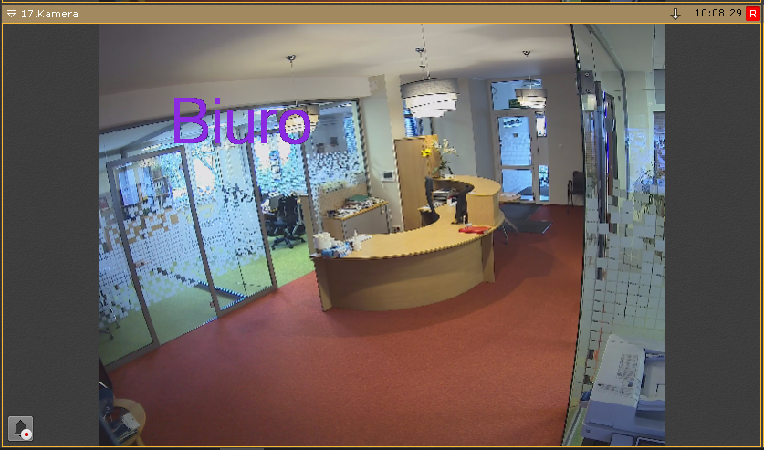 Istnieje możliwość wyświetlania tekstu na obrazie w oknie kamery. Tekst będzie widoczny dla wszystkich użytkowników we wszystkich trybach monitorowania, lecz nie będzie widoczny na wyeksportowanych stopklatkach lub nagraniach wideo.