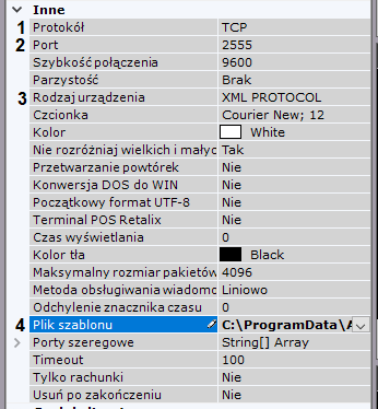 - Wyznacz XML PROTOCOL w polu Rodzaj urządzenia (3).