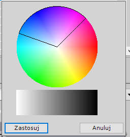 Wybrać zakres koloru przeciągając i upuszczając na skali szarości bądź palecie kolorów.