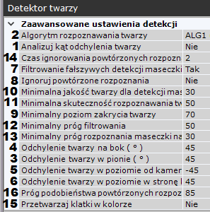 - Aby zastosować filtry, zaznacz Tak dla parametru Filtrowanie fałszywych detekcji maseczki (7).