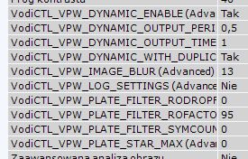 Parametr Opis VodiCTL_VPW_DYNAMIC_ENABLE Włącz/wyłącz śledzenie przy rozpoznawaniu tablic rejestracyjnych (domyślnie włączone).