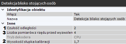 Domyślnie detektor blisko stojących osób jest wyzwalany, gdy ramki określające granice ludzkiego ciała oparte na "szkieletach" zaczynają się stykać między różnymi osobami.