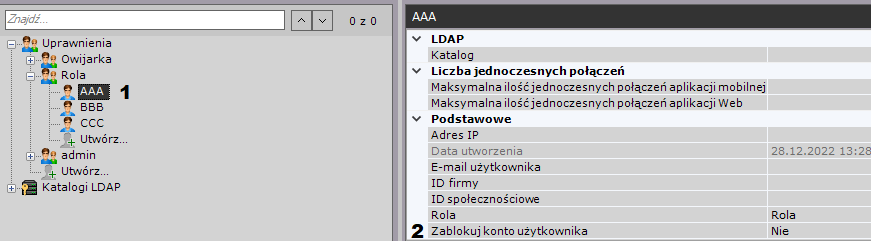 Istnieje możliwość zablokowania konta wybranego użytkownika, aby uniemożliwić logowanie.