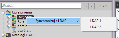- Wybierz Synchronizuj z LDAP, a następnie wybierz odpowiedni katalog LDAP (zobacz: Łączenie z katalogiem LDAP).