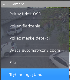 Aby wybrać domyślny tryb wideo, wybierz Tryb przeglądania w menu kontekstowym dla danego okna podglądu kamery i zaznacz odpowiedni tryb.
