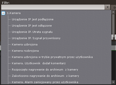 Jeśli nie jest zaznaczony żaden typ zdarzeń, wszystkie zdarzenia systemowe są zliczane.