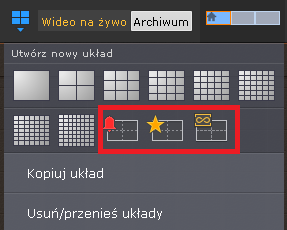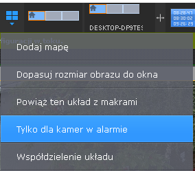 Można także zmienić standardowy układ na układ Kamery w alarmie. Aby to uczynić, otwórz menu w trybie edycji układu, a następnie wybierz Tylko dla kamer w alarmie.