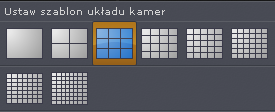 Istnieje możliwość ograniczenia ilości kamer na układach specjalnych poprzez wybór odpowiedniego formatu układu - 1, 4, 9, 16, 25, 36, 49, 64 (aby wybrać format, naciśnij na odpowiedni przycisk w menu). Układ dynamiczny jest tworzony pusty.