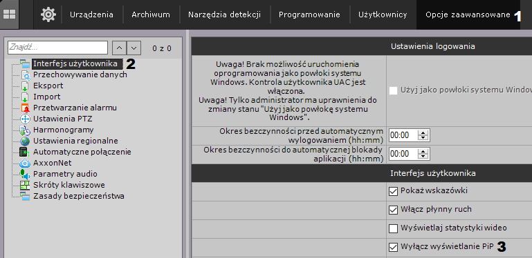 - Przejdź do Ustawienia → Opcje zaawansowane → Interfejs użytkownika (1–2).
