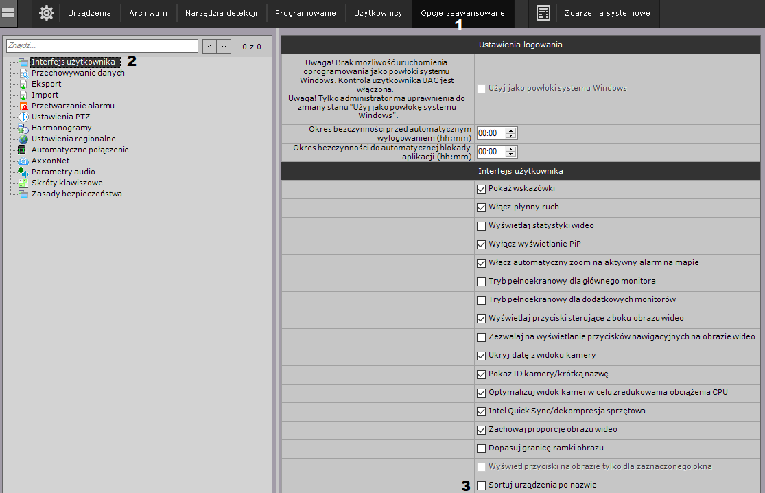 - Przejdź do Ustawienia → Opcje zaawansowane → Interfejs użytkownika (1–2).