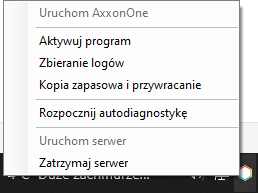 - Wybierz Zatrzymaj autodiagnostykę w Narzędziu Obszaru Powiadomień Axxon One,