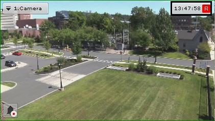 . W innym przypadku, litera R jest wyświetlana na szarym tle: .Jeśli kamera nie jest powiązana z żadnym archiwum, litera R jest przekreślona: