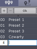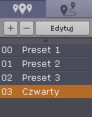 Aby przełączyć preset, naciśnij lewym przyciskiem myszy na odpowiednią nazwę z listy presetów. Kamera zmieni położenie do zapisanej pozycji.