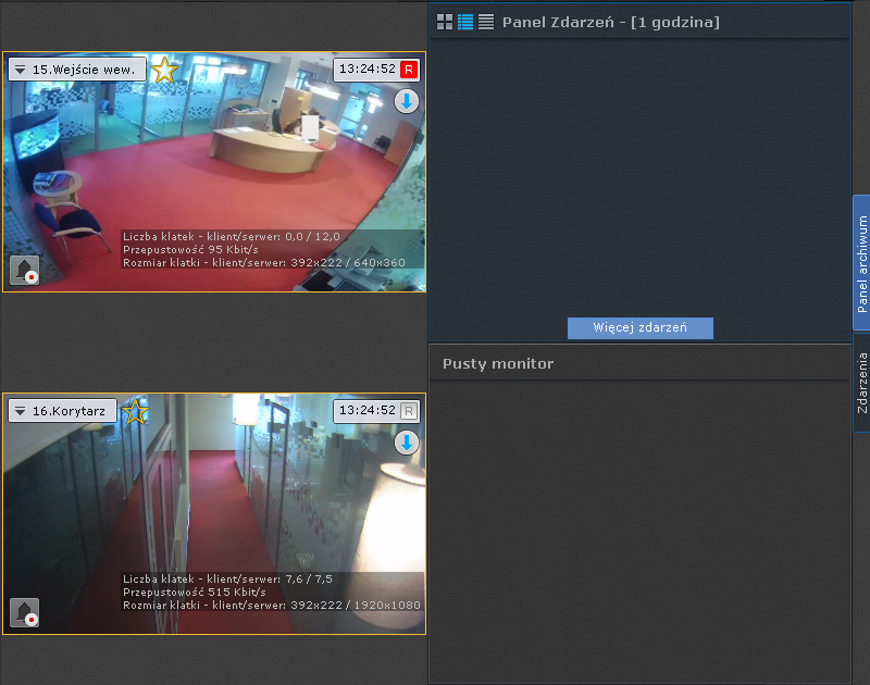 Ustawienia te nie są zapisywane; kamera będzie wyświetlana w dalszym ciągu przy ponownym przejściu do danego układu, lub po ponownym uruchomieniu Klienta.