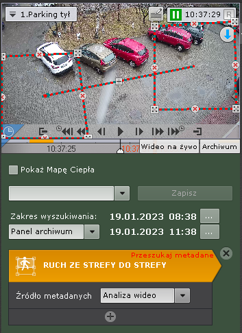 Aby wyszukać klipy wideo, na których obiekty przeszły z jednej strefy do drugiej: