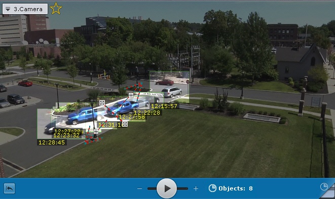 Gdy w nagraniach wyszukiwane są zdarzenia detekcji za pomocą metadanych (Wyszukiwanie tablic rejestracyjnych, Wyszukiwanie twarzy, Zaawansowane wyszukiwanie klipów wideo (MomentQuest)), możliwe jest wyświetlanie wyników w trybie Kompresora Czasu.