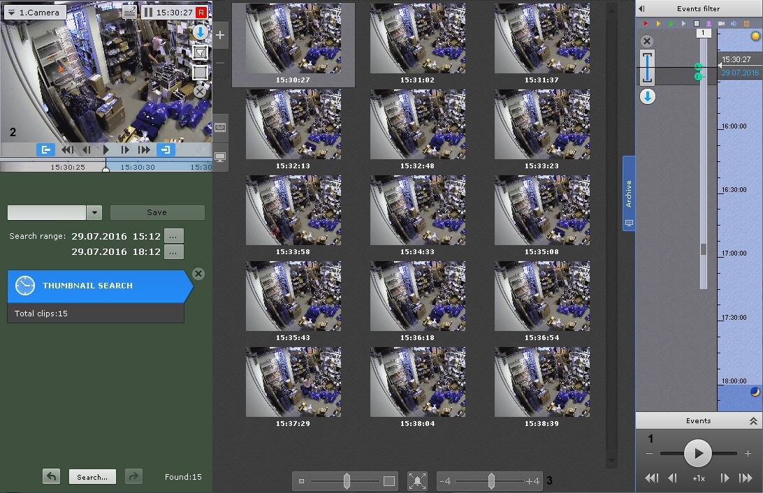 Domyślnie odtwarzanie rozpoczyna się od momentu określonego pod miniaturą klipu wideo. Istnieje możliwość użycia panelu kontrolnego (3) w celu zmiany czasu rozpoczęcia odtwarzania. Maksymalne przesunięcie do lewej oznacza rozpoczęcie odtwarzania o 4 sekundy wcześniej niż czas rozpoczęcia. Maksymalne przesunięcie do prawej rozpoczyna klip 4 sekundy później.