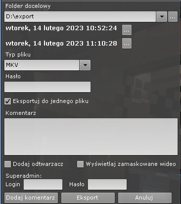 Przy eksportowaniu nagrań ze zdarzeń rekomendowany jest format EXE.