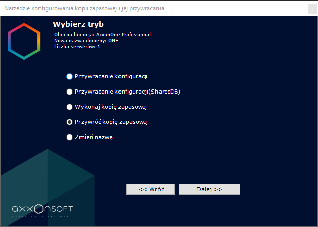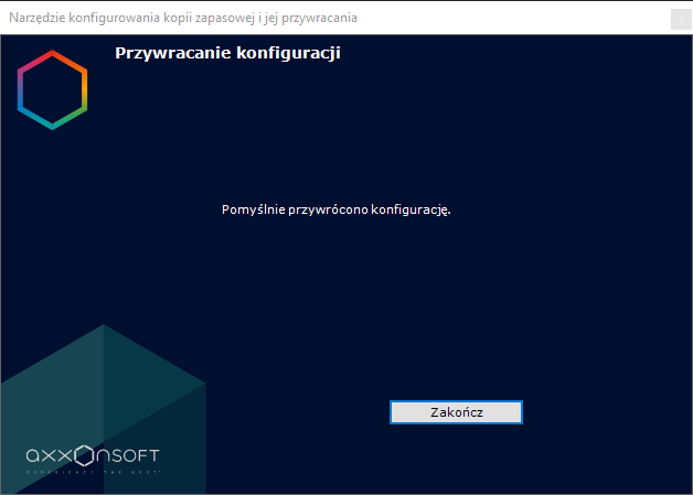 Serwer Axxon One musi zostać uruchomiony ponownie po przywróceniu konfiguracji.
