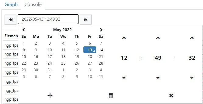 Karta Console wyświetla wszystkie możliwe wartości wszystkich elementów w czasie, gdy zapytanie jest kończone.Jeśli zmienisz datę oraz czas w kalendarzu, zostaną one zaktualizowane.