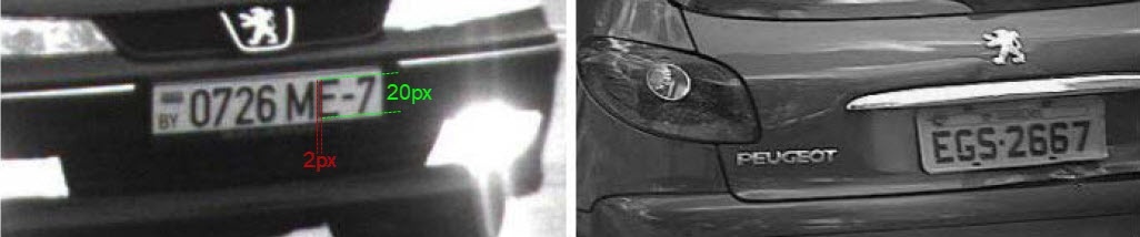 - Geometryczne proporcje strumienia wideo nie mogą odchodzić o więcej niż 10% od realnych geometrycznych proporcji tablicy rejestracyjnej.