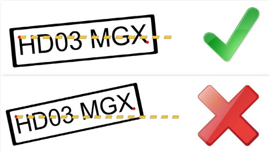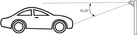 Kąt Zalecana wartość Maksymalna wartość Scheme Kąt pionowy (kamera skierowana w dół) 18-20° 30° Kąt poziomy (kamera odchylona na prawo/lewo w stronę tablicy rejestracyjnej) 5-10° 20° Odchylenie tablicy rejestracyjnej względem nawierzchni drogi 0 5° Podczas rozpoznawania jednowierszowej tablicy rejestracyjnej (z co najmniej 6ma znakami), kąt kamery musi spełniać "zasadę jednej linii": musi być możliwe wytyczenie takiej fikcyjnej poziomej linii, która przekreśliłaby wszystkie znaki na tablicy rejestracyjnej.