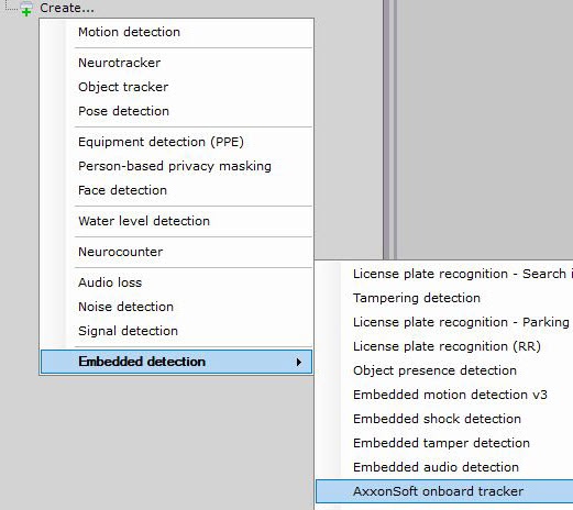 9. In Axxon One, create the AxxonSoft onboard tracker object for the corresponding camera.