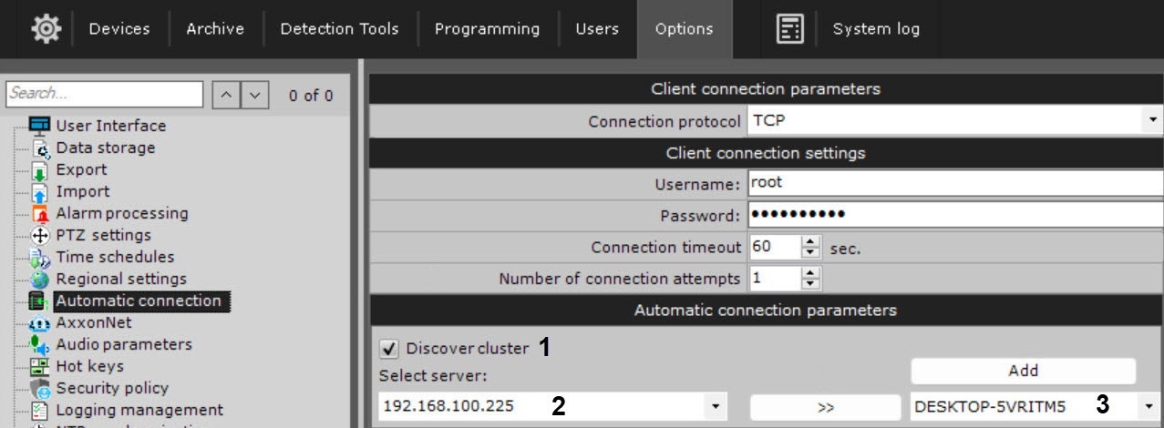 Configuring the automatic connection of the client to servers is complete. The next time you start Axxon One, the system will connect to the selected servers.