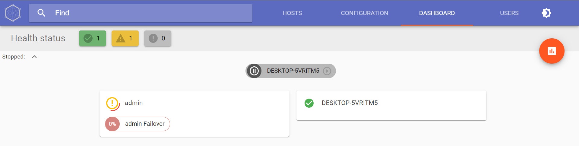 You can filter the Servers by their status using the Health status panel.