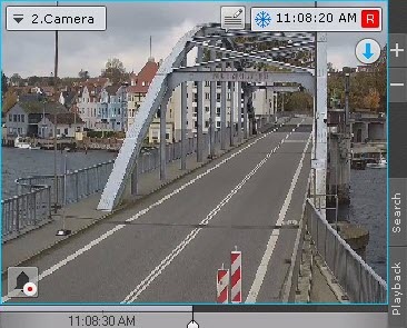 The buttons for specifying the time are also be available in the Surveillance window (see Navigating using the time indicator), if you want to switch to the Archive mode.