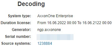 With the help of decoding, you can find out the type and the expiration date of the license, as well as what objects are allowed to be used in the system and in what quantity.