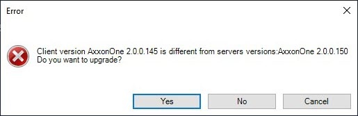 If a Server software version is higher than the Client version, you will be prompted to update your Client software automatically.