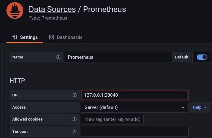 When Prometheus is successfully added to Grafana, the following window will be displayed: