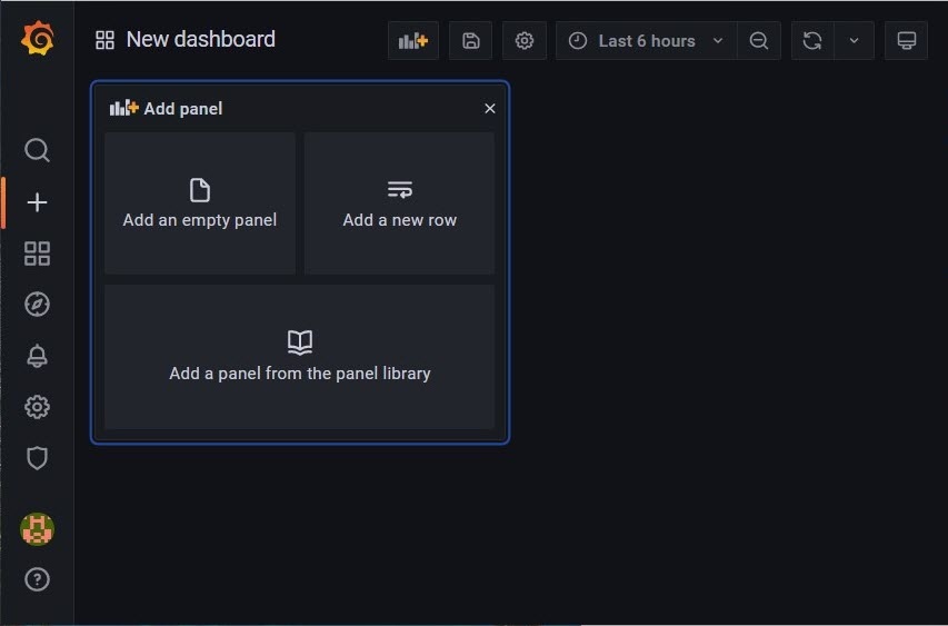 In Grafana, select the Configuration tab → Data sources and click the Add data source button.