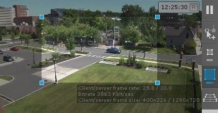 - Click the max button in the preview window. A rectangular area appears in the frame. Drag the anchor points to adjust the area to the maximum object size. The values update automatically in the Max. object height and Max. object width parameters.
