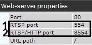 RTSP/HTTP 포트 필드에서 HTTP 터널을 통한 RTSP 데이터 전송에 사용할 포트 번호를 지정합니다 (2).