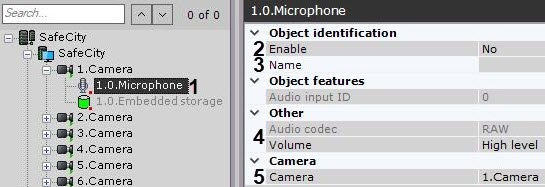 이 마이크와 연결할 비디오 카메라를 선택합니다 (5). 이 작업의 결과로 선택한 카메라는 마이크의 부모 객체가 됩니다.