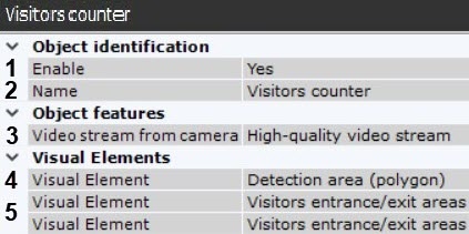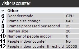 기본적으로 검출도구는 Camera. Visitor access in the direction of "Entrance" and Camera. Visitor access in the direction of "Exit" 이벤트를 생성합니다. 방문자 수를 집계하고, 특정 임계값 초과 시 알람이 발생하도록 설정하려면 다음을 수행하세요.