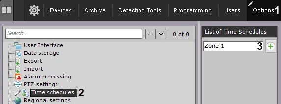 1. 설정 → 옵션 (1) → 시간 일정 (2)으로 이동하세요.