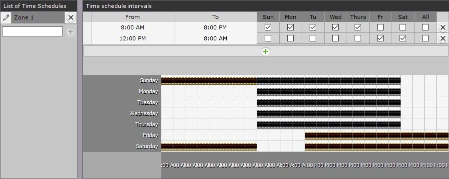 각 요일의 시간 간격을 타임 차트에 시각적으로 표시합니다.