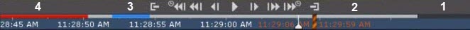 급 탐색 패널의 재생 제어 버튼은 재생 패널의 버튼과 동일합니다(재생 패널 참고). 고급 아카이브 탐색 패널에는 N 초 단위 로 앞뒤로 이동할 수 있는 버튼도 있습니다: 및 .