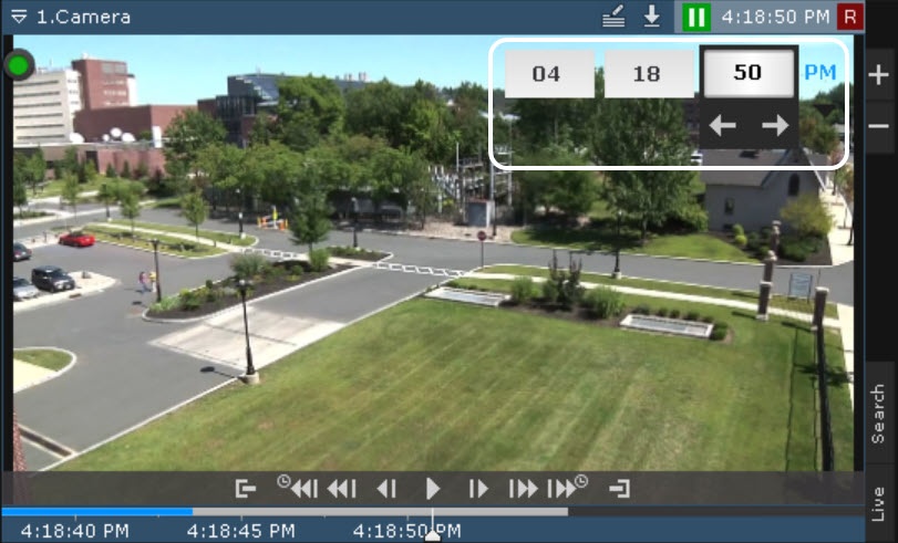 보기 타일의 시간 표시기는 아카이브에서 탐색하려는 타임라인의 현재 날짜 시간을 설정하는 데 사용할 수 있습니다.