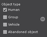 한 가지 또는 여러 유형(사람, 사람 그룹, 차량, 또는 버려진 객체)의 움직이는 객체를 검색할 수 있습니다. 이를 위해 해당 항목의 상자를 체크하세요.